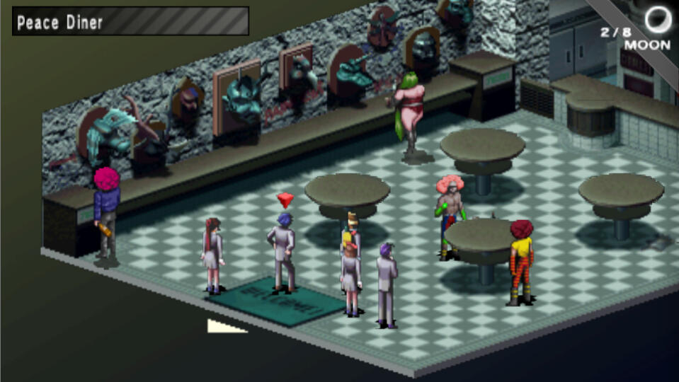 Entering from the south, there is an Agastya Tree in the first room on the left, so you can save your game. Feel free to upgrade your gear at the various shops here, and when you are ready, head to Peace Diner on the western section of the mall. Talk to everyone to get a better understanding of what's going on here.When ready, save your game and head into the door next to the casino, Judgement 1999, for a dungeon, Kama Palace.
