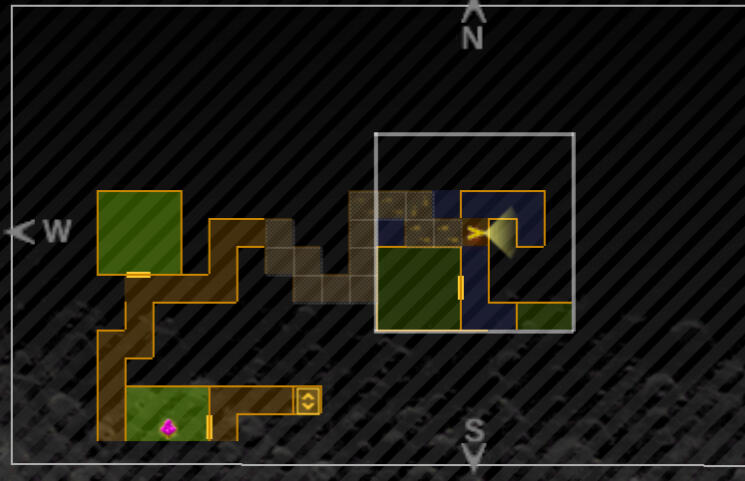 Once to the other side, you can also use the screenshot above to follow the path up to the northeast corner where you will find an Agastya Tree room. Go in and save again. From here, head west pass the hall you just came from, and south to the dark room once again. Your path from the tile directly outside is: 1S, 1W, 2S, 1E, 1S, 3E.
