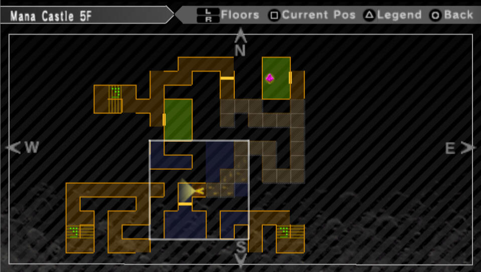 Upon entering, you will see another cutscene. Afterward, place the Compact Half on the pedestal and enter the dungeon.Head straight north to the fork. Take the west path and take it northeast to reach the staircase. Take them up to 2F.From here, head southeast, and then north to reach two rooms. This is a treasure room, and an Agastya Tree. Open the chests to obtain Revival Bead, Chewing Soul x2, Repulse Bell x2, Amethyst, and Life Stone. Make your way back to the staircase and head back down to 1F.From here, work your way south through 2 gates until you find another set of stairs. Take these up to 2F.Now make your way west, north a little, then east to the center of the room to find another staircase. Take these up to 3F.Just east is an Agastya Tree room. Save your game. From there, go south, west, south, and east to reach another staircase. Take these up to 4F.4F is just a straight shot to another set of stairs, so go ahead and head up to 5F.follow the path on 5F to reach a second set of stairs that goes back down to 4F.Follow the long hallways on 4F to reach yet another staircase going back up to 5F again.Finally, follow 5F until you find a room with 8 chests in it. Only open the one on the left corner, and the bottom corner to find Aquamarine, and White Tablet. These will both damage you upon opening. Leave the other chests be, they all reduce your HP to 1 with no reward.At This point I would recommend using an Emergency Exit or Traesto to get back up to 1F, then work your way back to 3F with the same route you took earlier.Save at the Agastya Tree again, and from the point you entered 3F, head west this time and follow some winding halls to reach a staircase going up to 4F.On 4F, head east and south until you reach a dark room just like the one at SEBEC. This time your path, from the gate, is going to be: 2W, 1S, 1W, 2S, 2W, 1N, 1W, 2N, 1W, 2N, 1E, 2N. The screenshot below shows it for you.